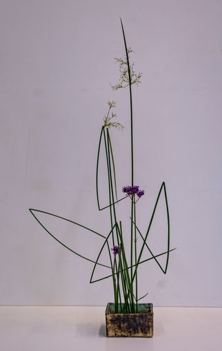 26.09.2025 „Einladung-download“ In diesem Semester ist unser Thema „Geometrische Formen“. An unserem 1. Arbeitsabend beschäftigten wir uns mit spitzen Winkeln als Gestaltungselement für ein modernes Arrangement. Erlaubt war neben floralem auch nonflorales Material. Auch die ausgewählten Gefäße können das Thema aufgreifen.
