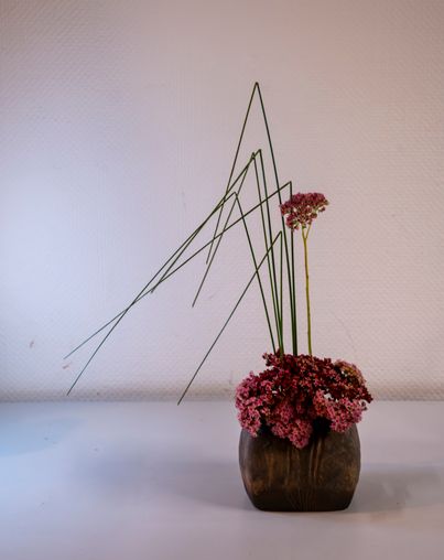 26.09.2025 „Einladung download“ In diesem Semester ist unser Thema „Geometrische Formen“. An unserem 1. Arbeitsabend beschäftigten wir uns mit spitzen Winkeln als Gestaltungselement für ein modernes Arrangement. Erlaubt war neben floralem auch nonflorales Material. Auch die ausgewählten Gefäße können das Thema aufgreifen.